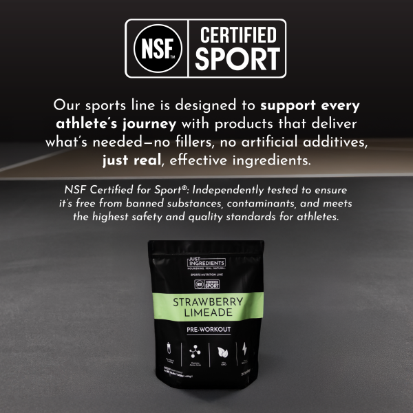 Power your workouts with Just Ingredients’ Strawberry Limeade Pre-Workout. This formula includes BCAAs and adaptogens. to support workout performance and recovery. Plus. it’s NSF Certified for Sport?. so you can trust that every ingredient meets the highest safety and quality standards.