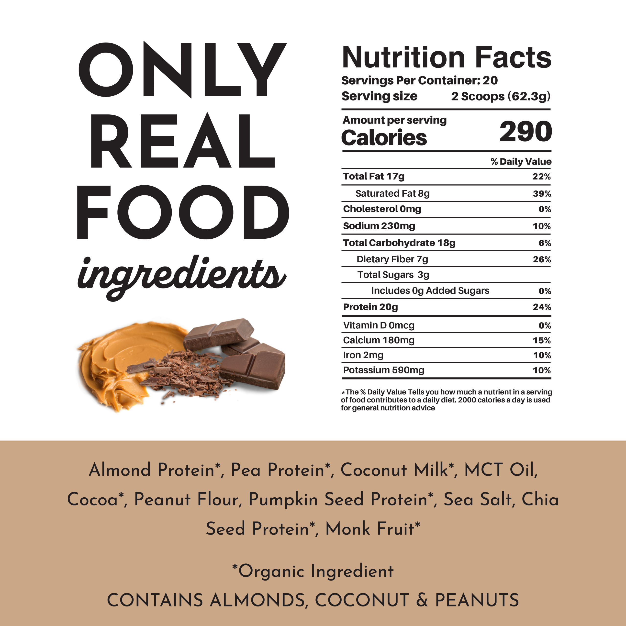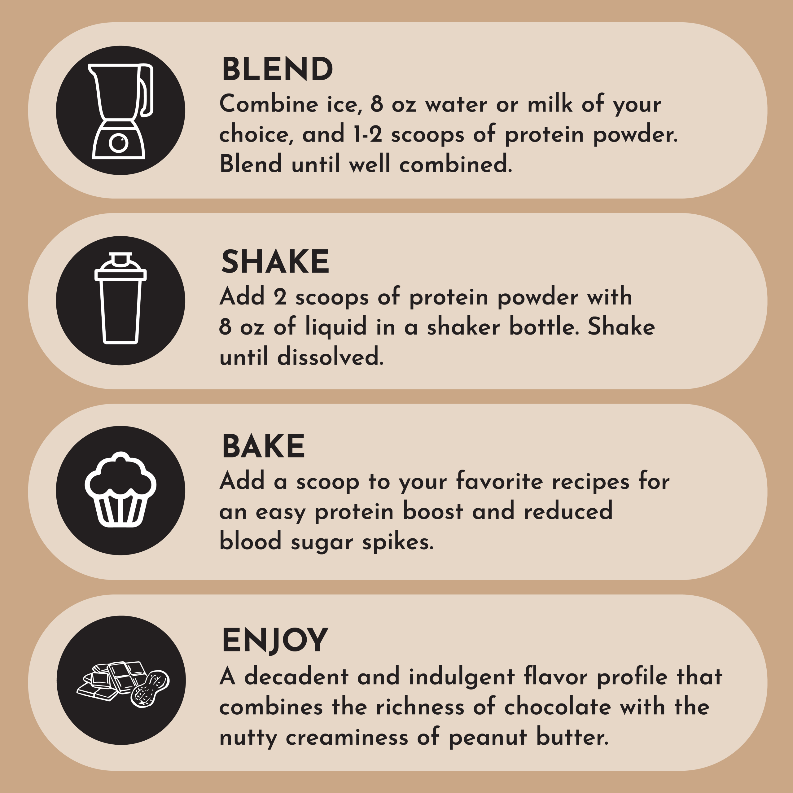 A rich. indulgent blend of peanut butter and chocolate creates a satisfyingly creamy flavor with a subtle nuttiness. It has a thicker texture than the whey protein but is creamy and smooth.