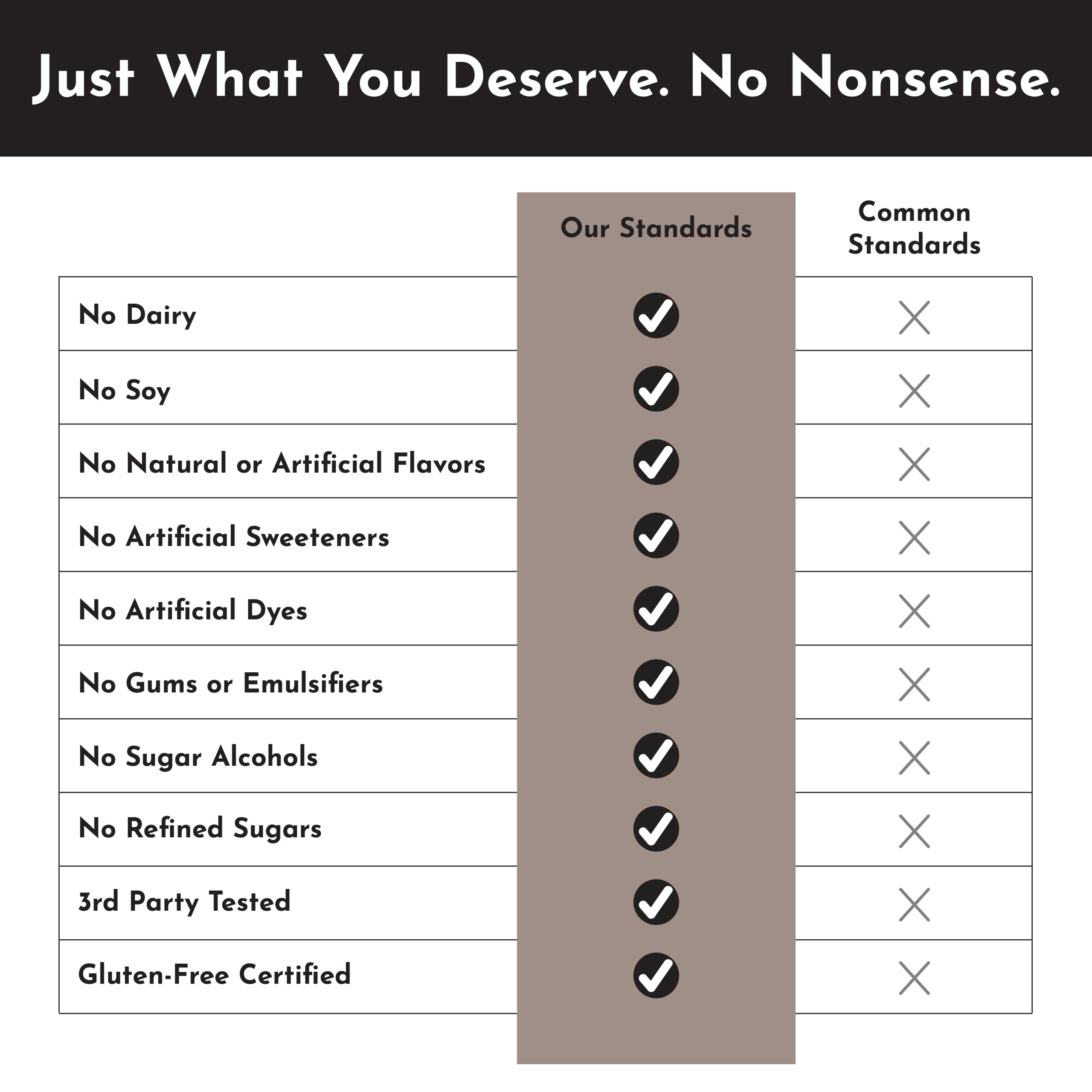 - Free from sugar alcohols. gluten. artificial sweeteners or any artificial ingredients.