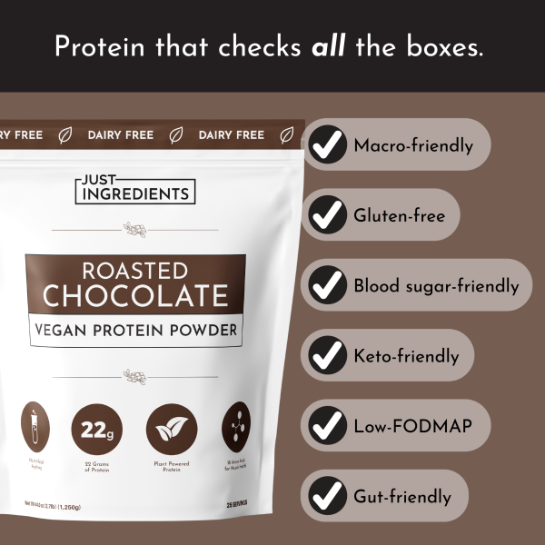 Vegan Roasted Chocolate Protein. a creamy and satisfying protein powder made from five plant-based proteins. With a creamy. not gritty and not chalky texture. you’ll enjoy the smoothness of the protein blends that are rare to come by when drinking vegan protein. making it the perfect choice for those seeking a plant-based protein.